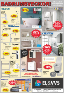 Just nu har vi badrumsveckor hos EL & VVS För Hus & Hem. Välkommen in till vår butik för att ta del av våra erbjudanden.